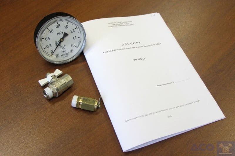 - паспорт сосуда, работающего под давлением;